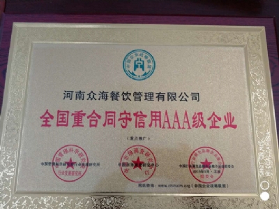 • 18-02-10熱烈祝賀河南眾海餐飲管理有限公司榮獲河南餐飲與飯店協會團餐委